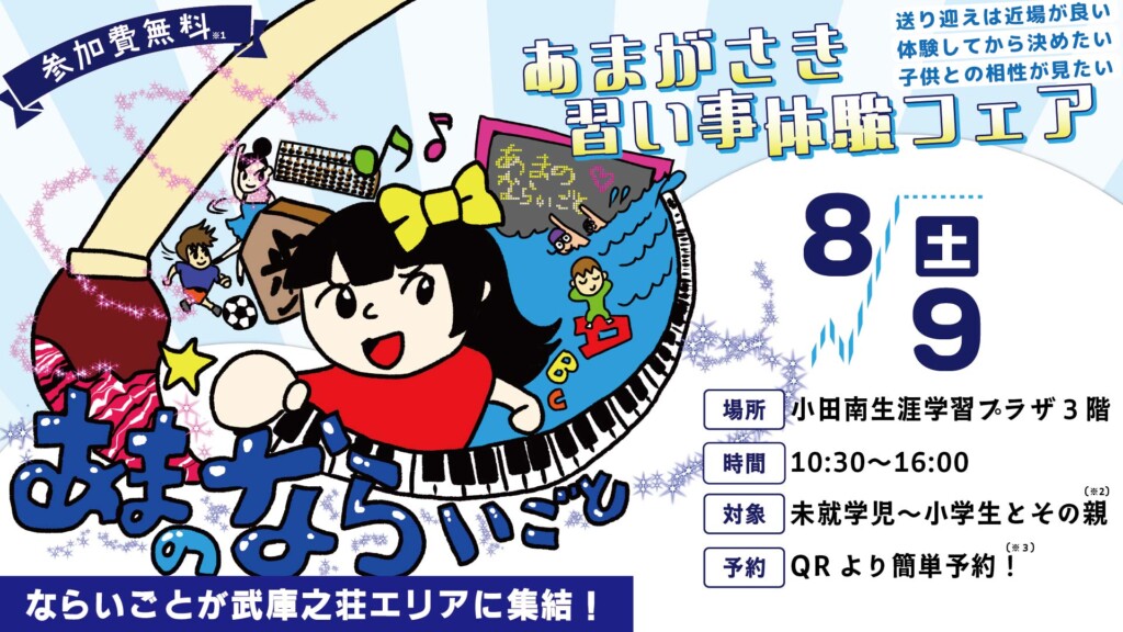 京進の英会話ユニバーサルキャンパス 尼崎校は、2025年8月9日(土)に開催される「あまのならいごと体験フェア」に出演します。