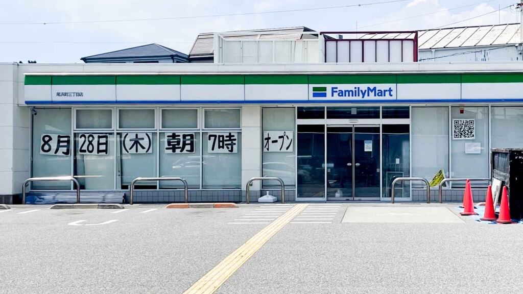 【改装?】尾浜うどんすぐ近くのファミリーマート尾浜町三丁目店が突如改装!レンタル自転車置場はどうなった?