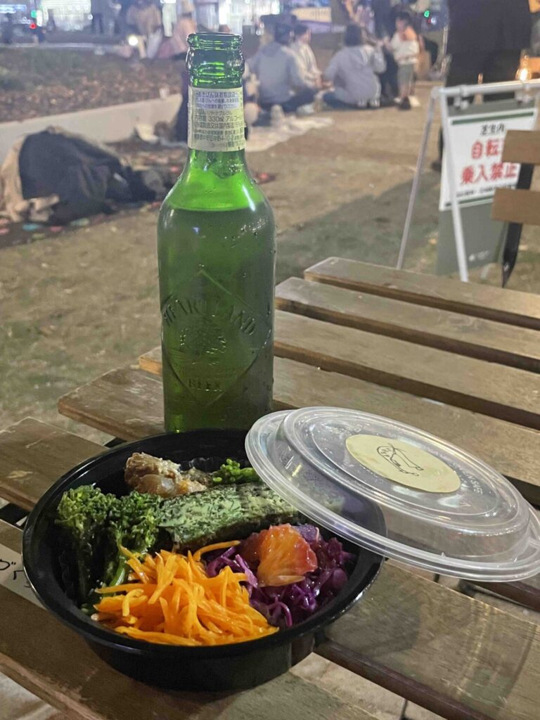 友人が注文したおつまみセットは、器にぎっしりと具材が詰まっており、お酒との相性も抜群でした。地域に根ざした活動を続けているお店の味が、駅前で気軽に楽しめるのはイベントならではの魅力です。
