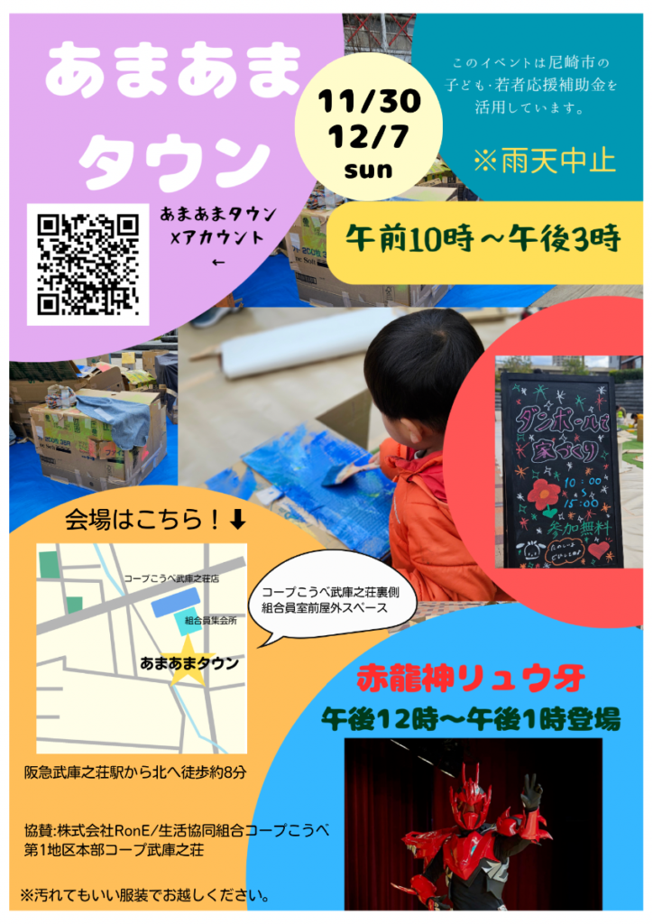2025年11月30日(日)と12月7日(日)にコープこうべ武庫之荘店の裏側・組合員集会室前の広場で開催される、無料イベント「あまあまタウン」。